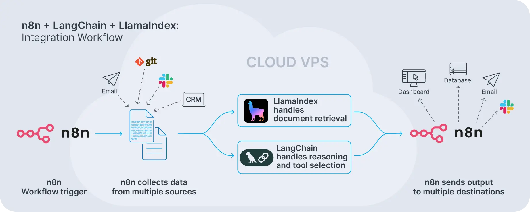 Most real projects don’t force an either-or decision. Many production stacks use LlamaIndex as the knowledge layer, LangChain as the orchestration layer, and n8n as the workflow engine tying them together on a VPS or Dedicated Server.